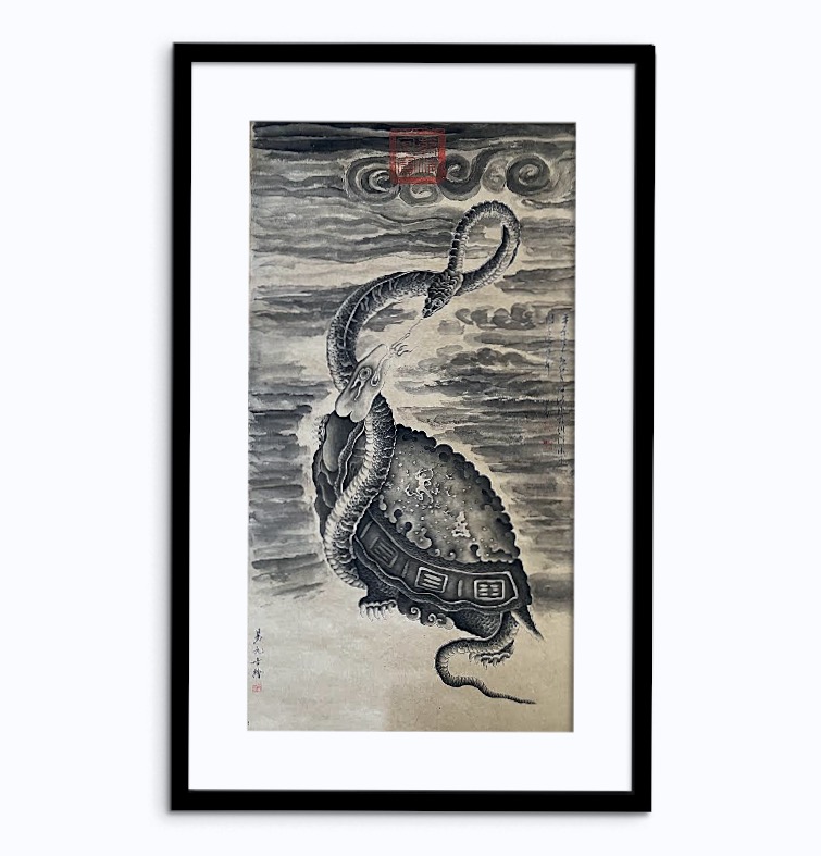 A Wonderful original Chinese, antique Ink Wash Scroll painting of a tortoise and snake.