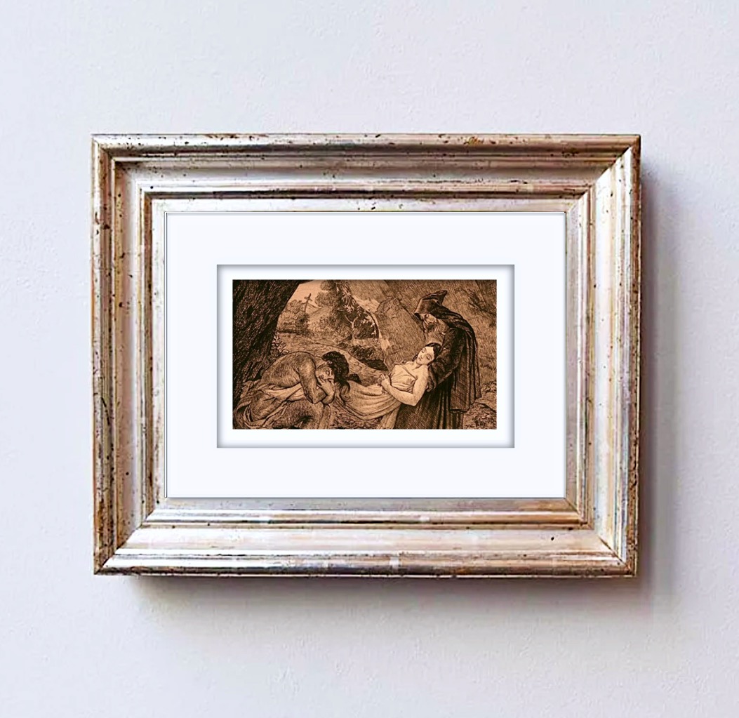 Pen and Ink Drawing Love Death Atala By Anne Louis Girodet Trioson
