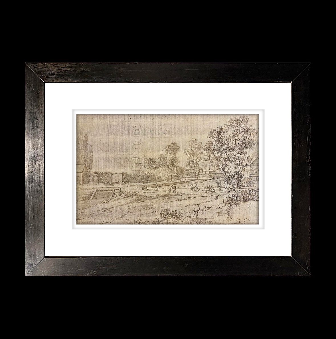Very Rare & Old Bridge Landscape Pencil Drawing On Antique Paper