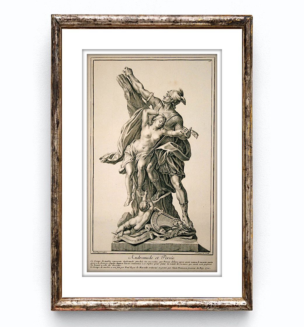 Black and white antique copper etching of a figure mythology print drawing. Complete and authentic universal work. A massive folio volume of pages on hand made paper, this was from a popular...