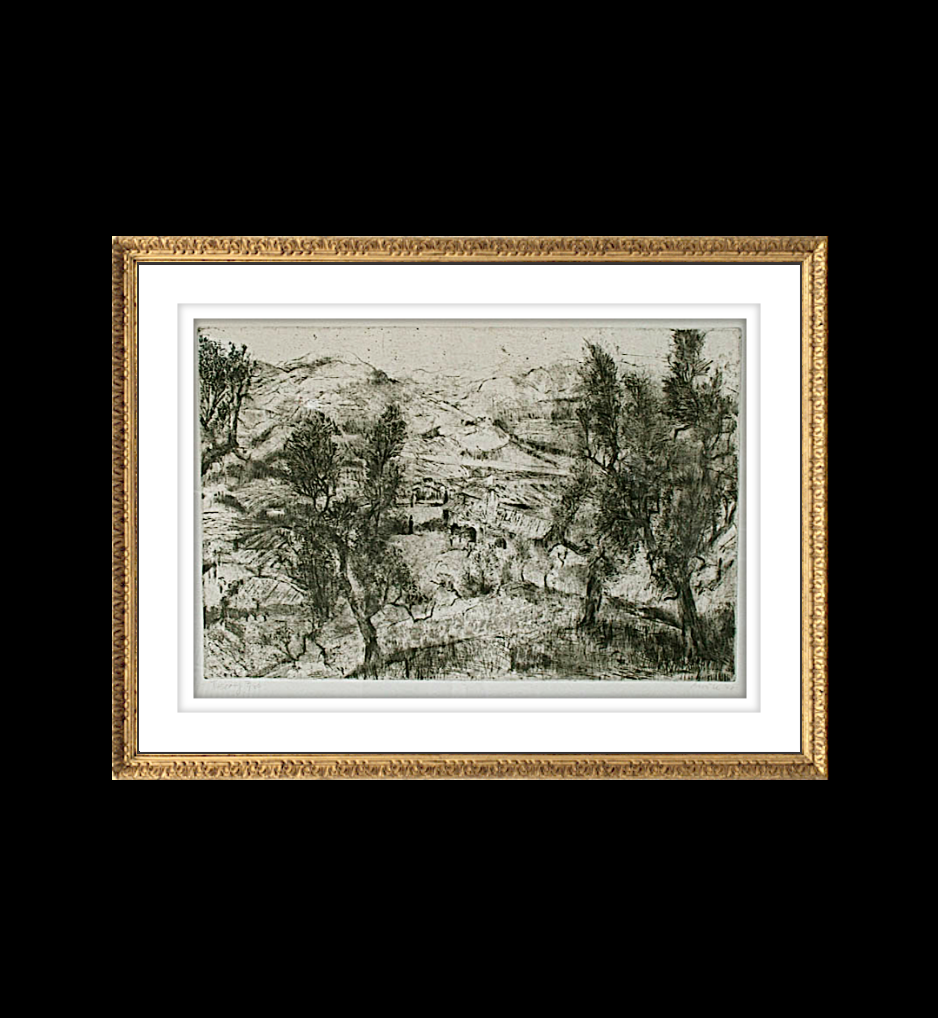 A Metal Etching of a old farm home. This is signed by the artist. may be considered as one of the founding works on paper. lithograph, 1920s to 1930s, a fine impression. A Metal Etching by a...