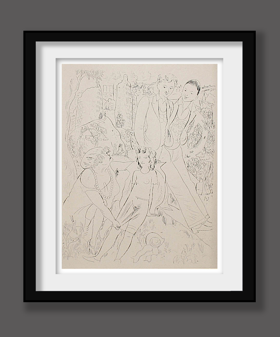 Original work on paper pen and ink drawing. This vivacious drawing is a preparatory study for one of Anne Louis Girodet Trioson, most celebrated paintings. It is based on Chateaubriand's r...
