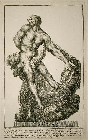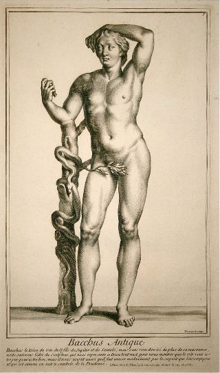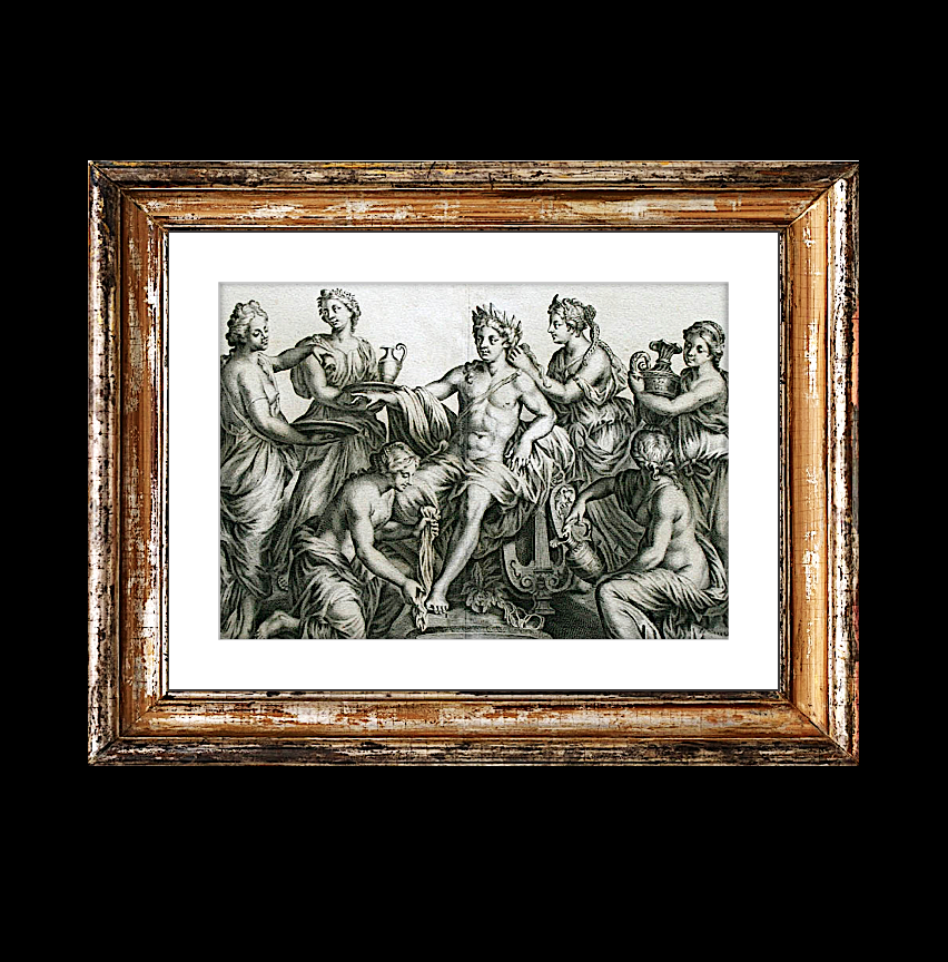 Black and white antique copper etching of a figure mythology print drawing. Complete and authentic universal work. A massive folio volume of pages on hand made paper, this was from a popula...