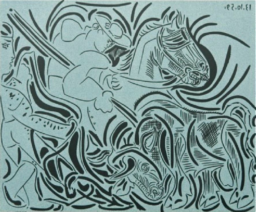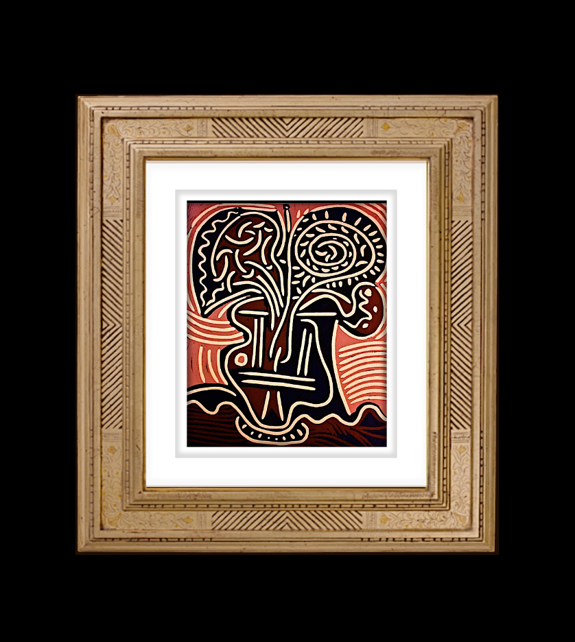 Picasso's linocuts from the 1950s and 60s often featured bold, abstr...