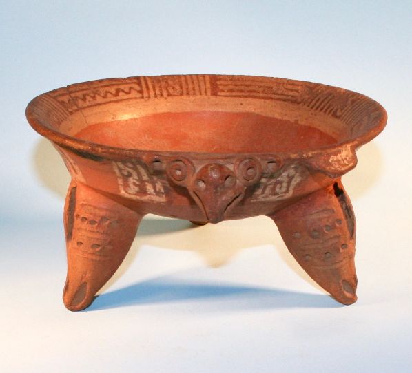 Ancient Three Footed Terra-cotta Mayan Ceramic Bird Bowl