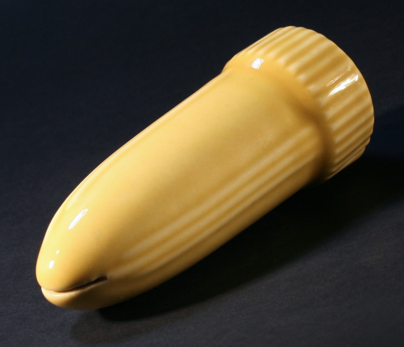 Super rare this one somehow survived without getting broken. Fantastic looking yellow Art Deco Hose tool. It looks like a Sexual dildo But it's not. Antique Pottery Ceramic Water Sprinkler H...