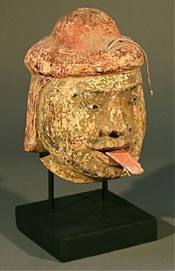 Large Burmese clay ceramic and wood marionette head