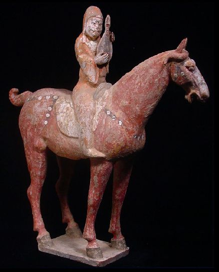 Tomb excavated painted pottery equestrian figure - Han Dynasty