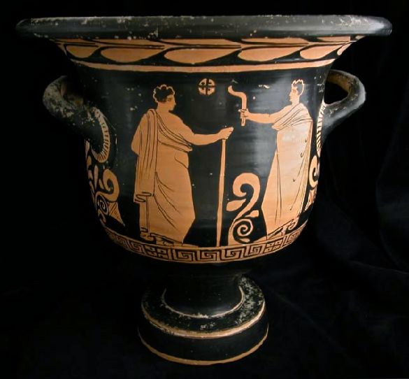 Ancient Apulian Terracotta Red-Figure Bell Krater Mediterranean: Origin: Mediterranean