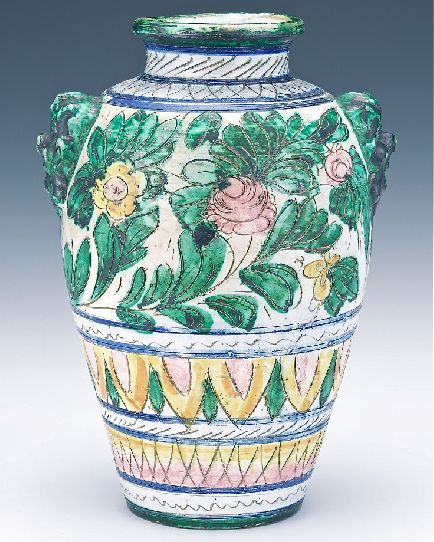 A fantastic looking Mediterranean Pottery Vase Jar. Looks to be Italian a Mediterranean Pottery style. This is a decorative pottery vase. 19"T.