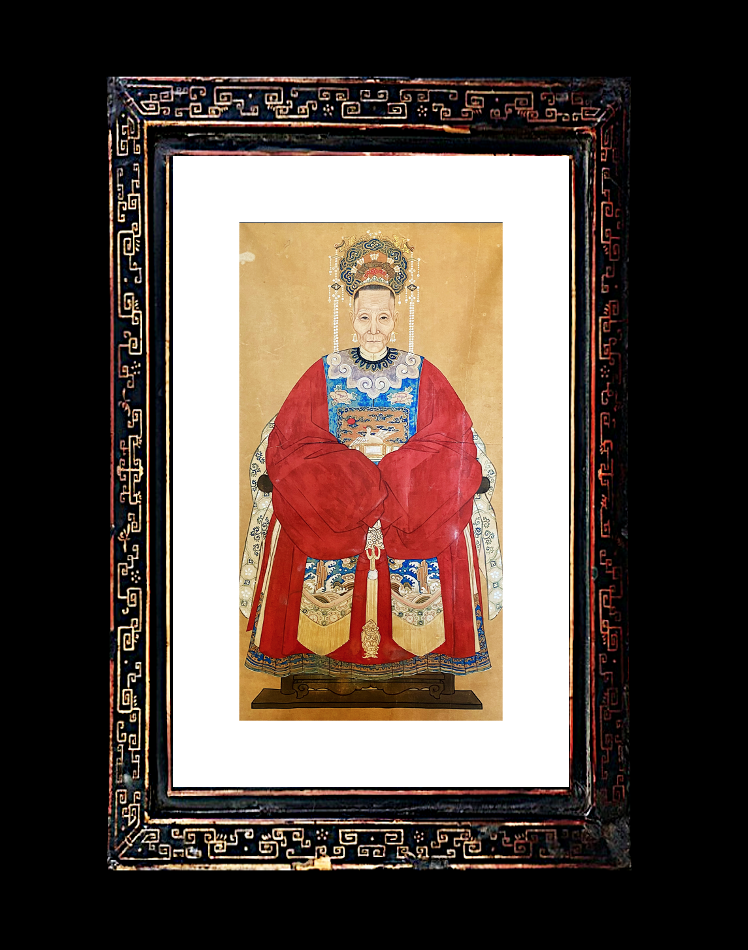 A Beautiful Original and Rare 19th-Century Chinese Antique Ancestor Portrait Watercolor Painting.
