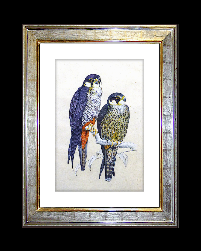 Gouache Painting Hand Rendered Lifelike Peregrine Falcons On Paper