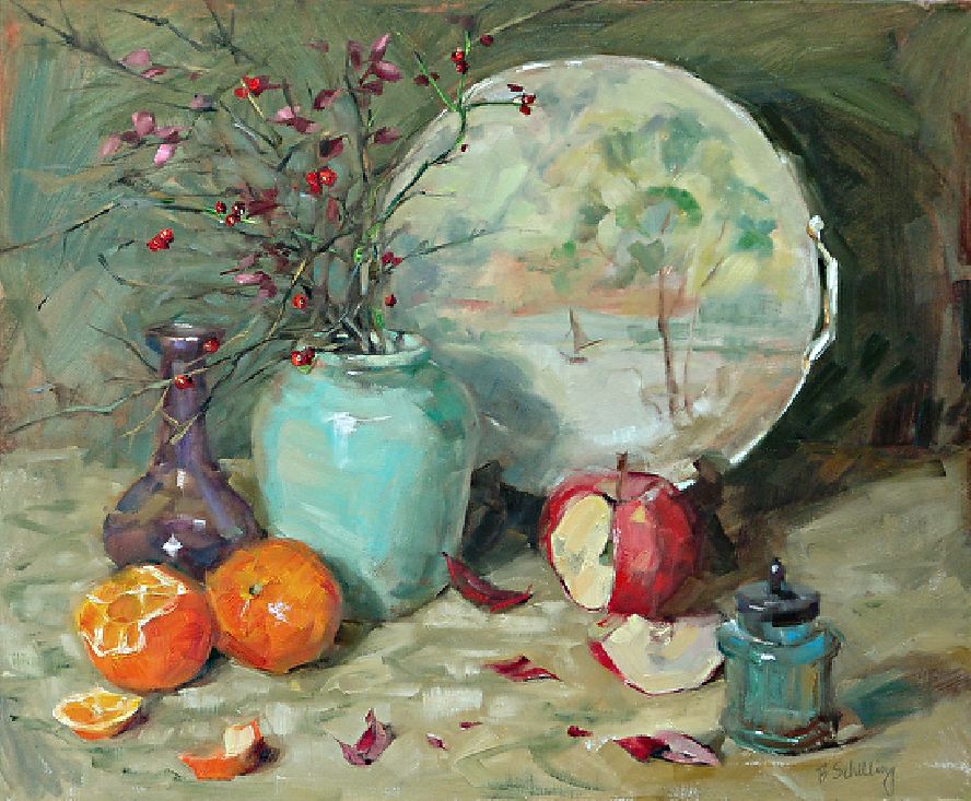 Picotee-and-Clementines Still Life Painting By Artist Barbara Schilling