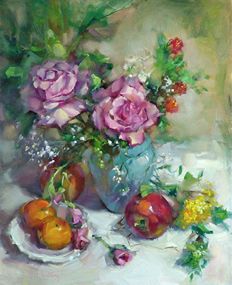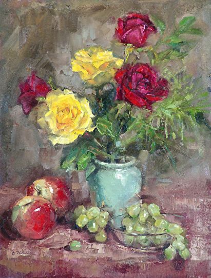 Red-And-Yellow-Roses Still Life Painting By Artist Barbara Schilling