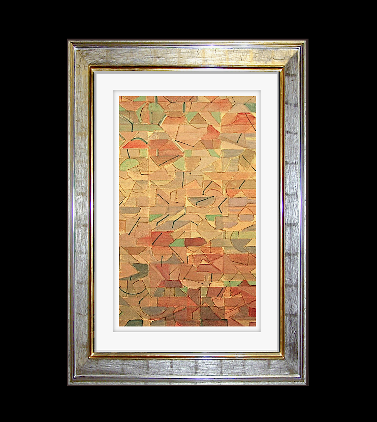 An original captivating small orange and red antique cubist abstract watercolor painting on paper, showcasing a great aesthetic. One of two Watercolors. The artwork is signed by the artistâ€...