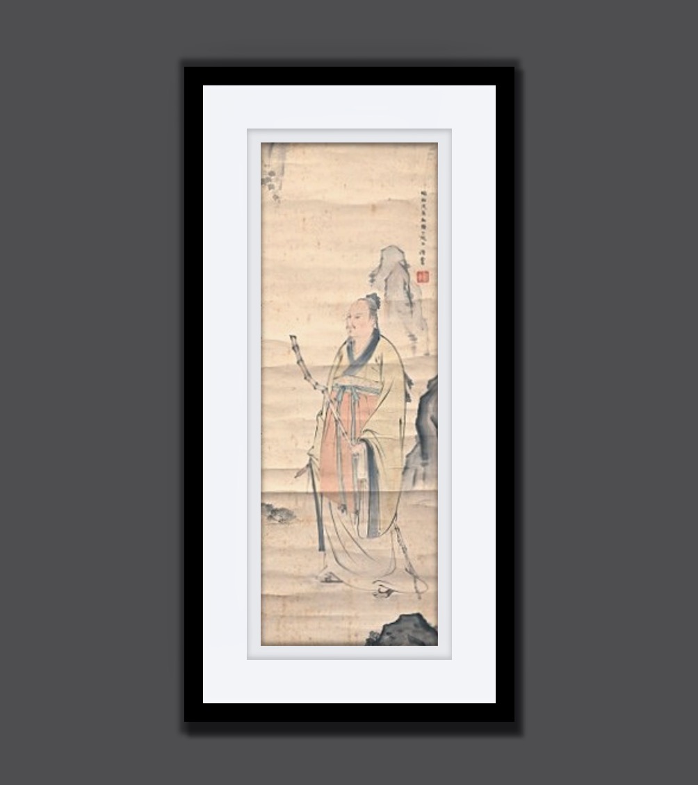 A Large Japanese Scroll Painting, Early 20th Century: Japanese scroll painting depicting a Chinese sage in a landscape, ink and watercolor on paper mounted as a scroll. Comes with origi...