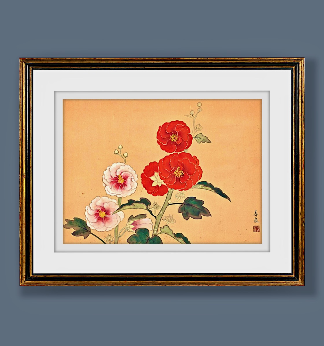 Original Antique Japanese Watercolor Painting of A Tree Branch