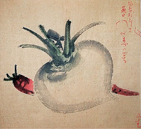 Gorgeous one of a kind watercolor painting of Japanese two vegetables, by a Japanese artist. Titled "Unknown" In excellent c...
