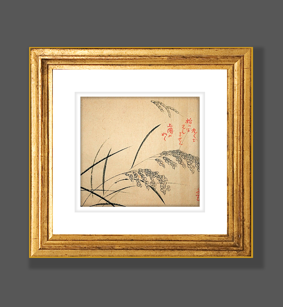 19 Century Japanese Watercolor Painting of Wheat.