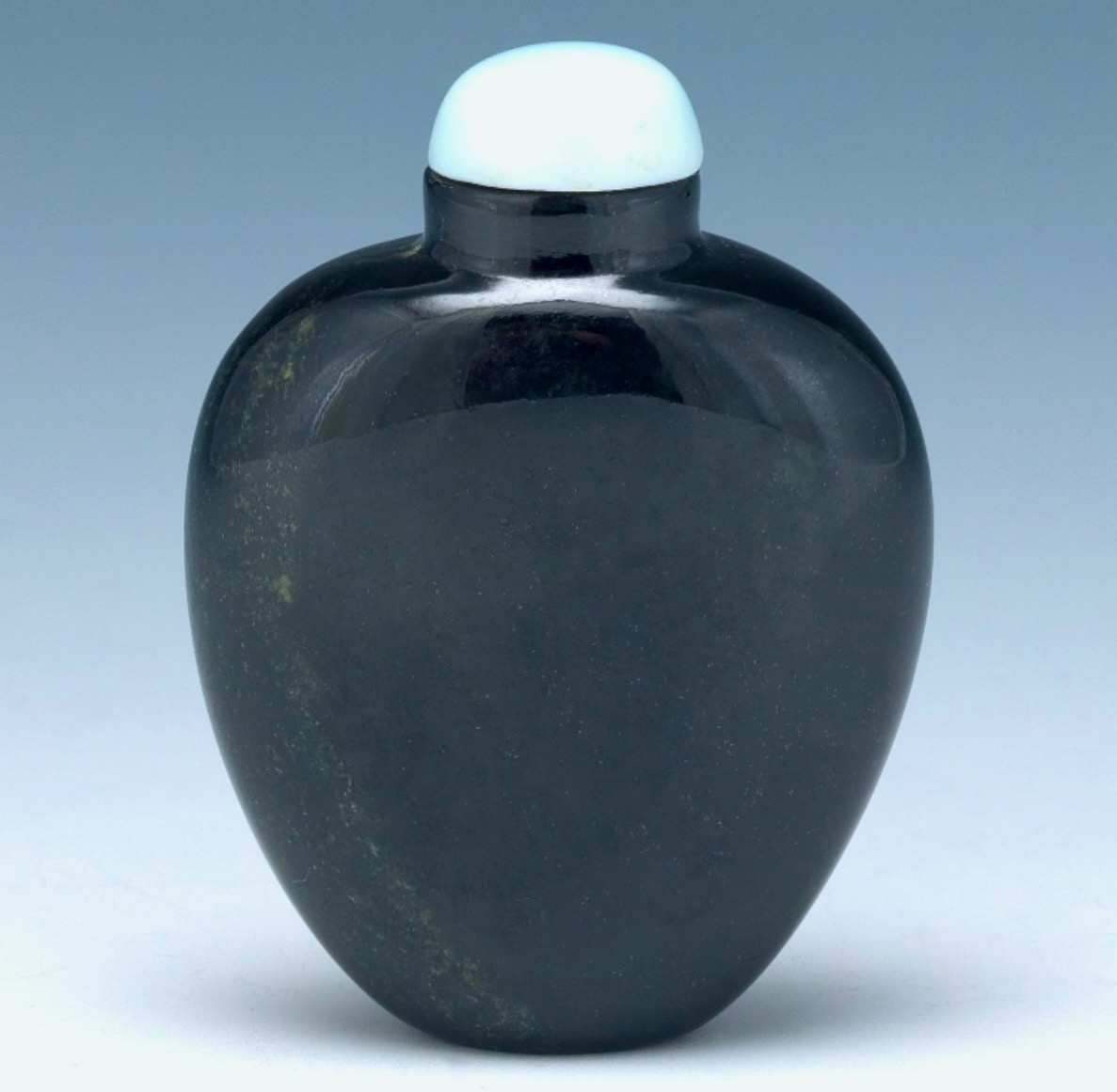 Chinese Carved Chromium Jade with Porcelain Stopper Snuff Bottle