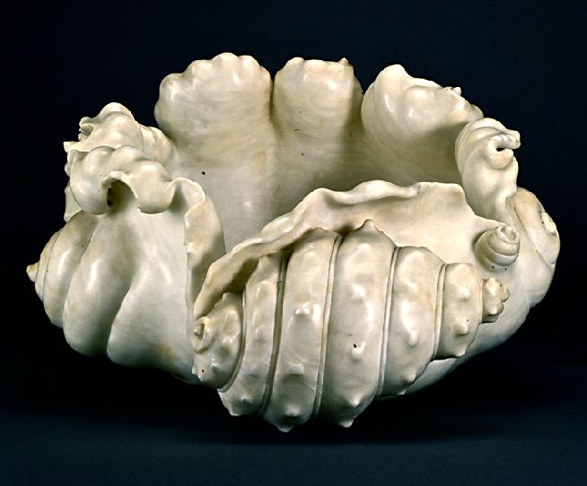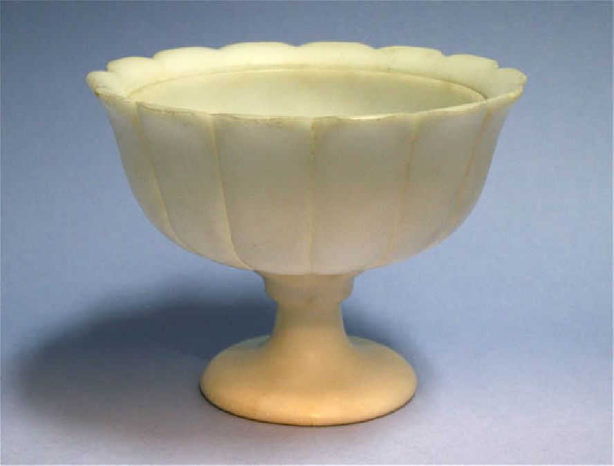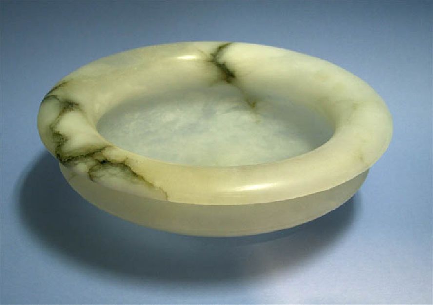 Antique white carved Alabaster bowl vase with Beautiful Marbling