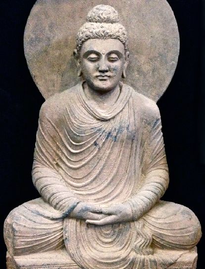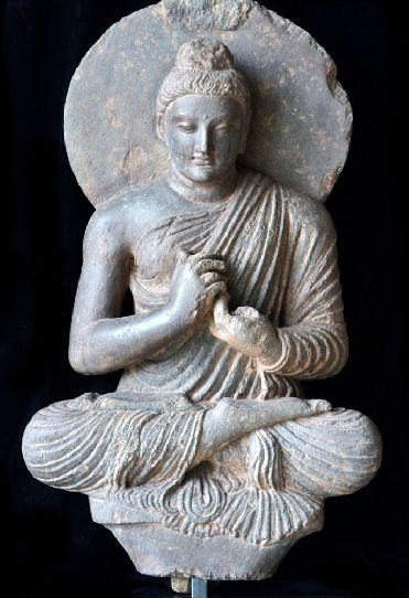 MAGNIFICENT LARGE GANDHARAN SEATED BUDDHA. 1st-2nd century AD. 36 inches height. Of the finest style. Beautiful sensitive hand carved figure sculpture of the Buddha seated in full lotus p...
