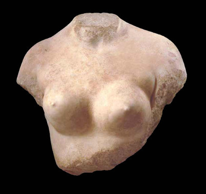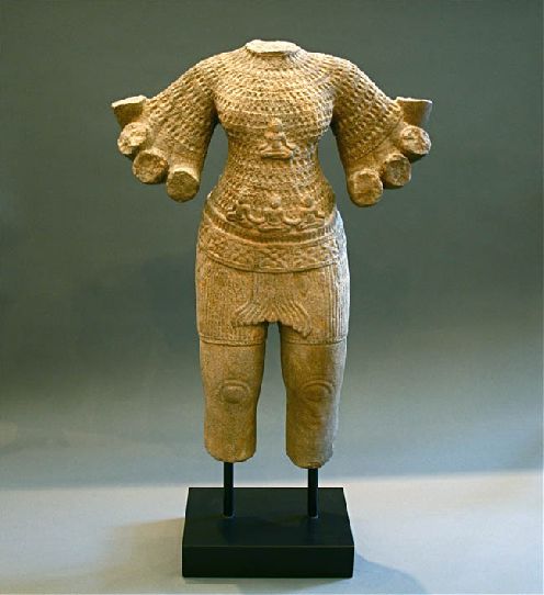 A primitive headless statue with broken eight arms a copy made in sand stone.