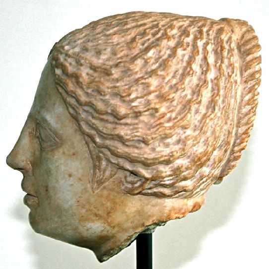 MUSEUM QUALITY OF EXQUISITE ETHEREAL STYLE: STUCCO HEAD OF A BODHISATTVA. Gandhara, 1st-2nd century AD. 18 h x 10 w x 10 d inches. Traces of original white glaze and red pigment. On custom...