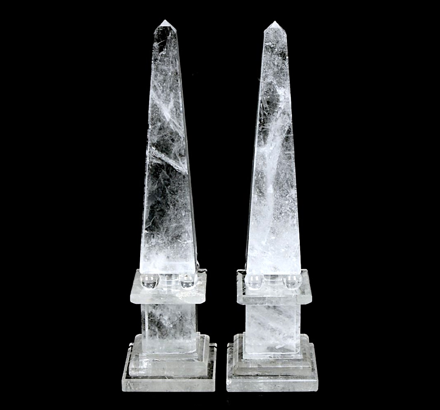 Large Exquisite Handmade Rare Rock Crystal Ice Obelisks. European design carvings. These are absolutely beautiful with those natural cloudy and clear inclusions. We can make custom desi...