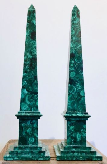 Large Pair of Designer Russian Marble Malachite Obelisks sculptures