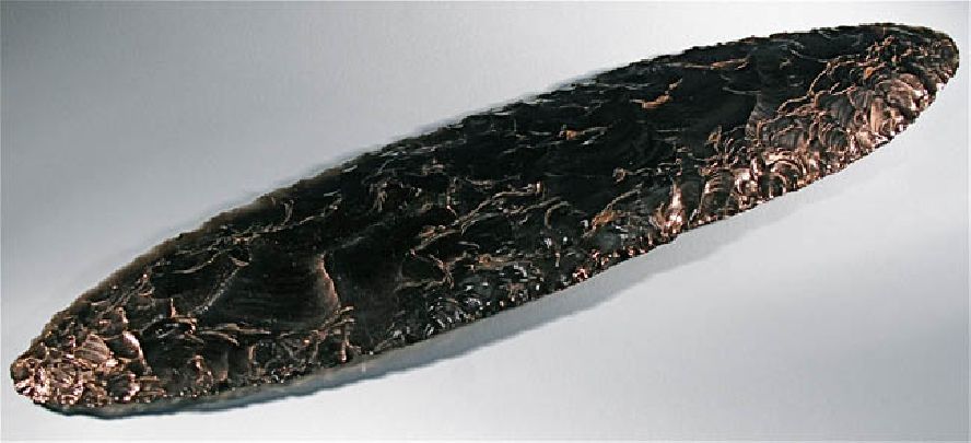 Extremely Rare, One-of-a-Kind Large Obsidian Spearhead — Native American Artifact. This exceptional and very large obsidian spearhead is a one-of-a-kind artifact, expertly crafted by a mas...
