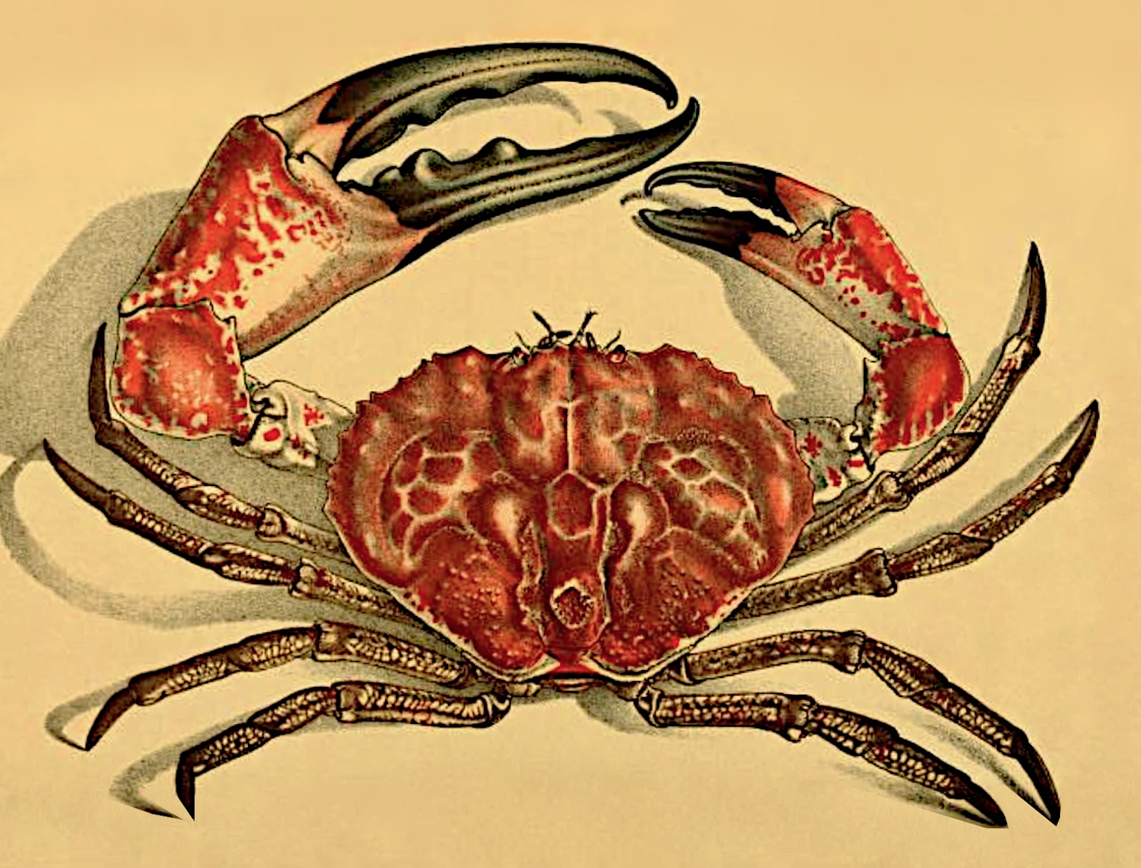 Antique Watercolor Scientific Study Art Crab Print