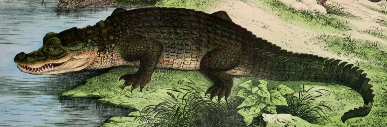 Antique Crocodile Illustration Artwork On Paper
