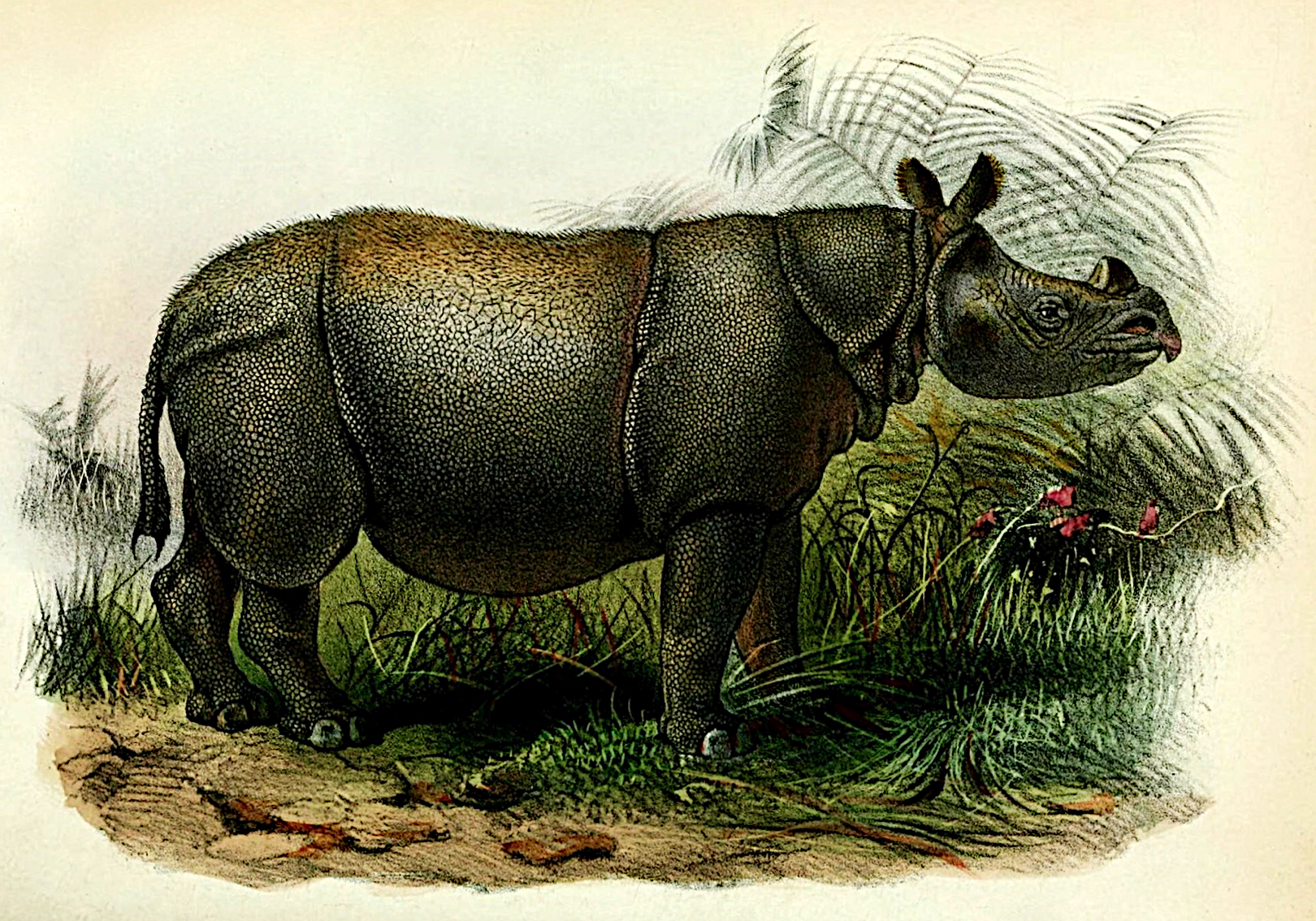 Antique Print Asian Rhinoceros Art Rendering Study