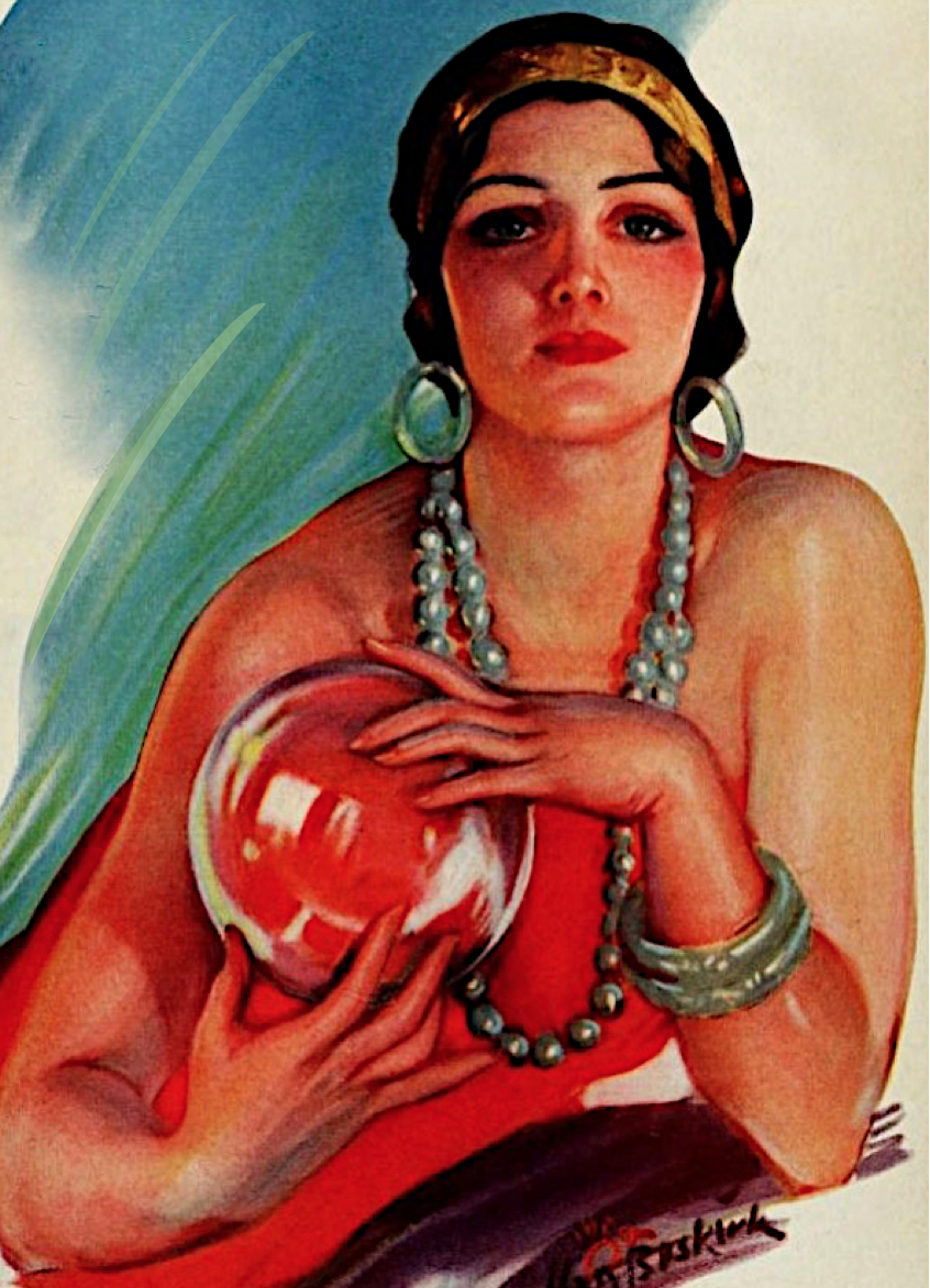 Vintage Illustration Woman Reading A Crystal Ball