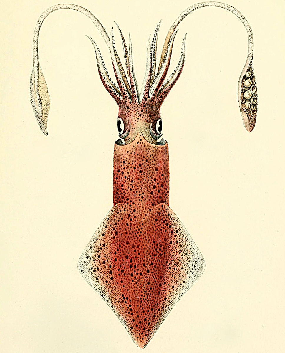 Loligo Vularis Ocean Sea squid Art Rendering Addition Print