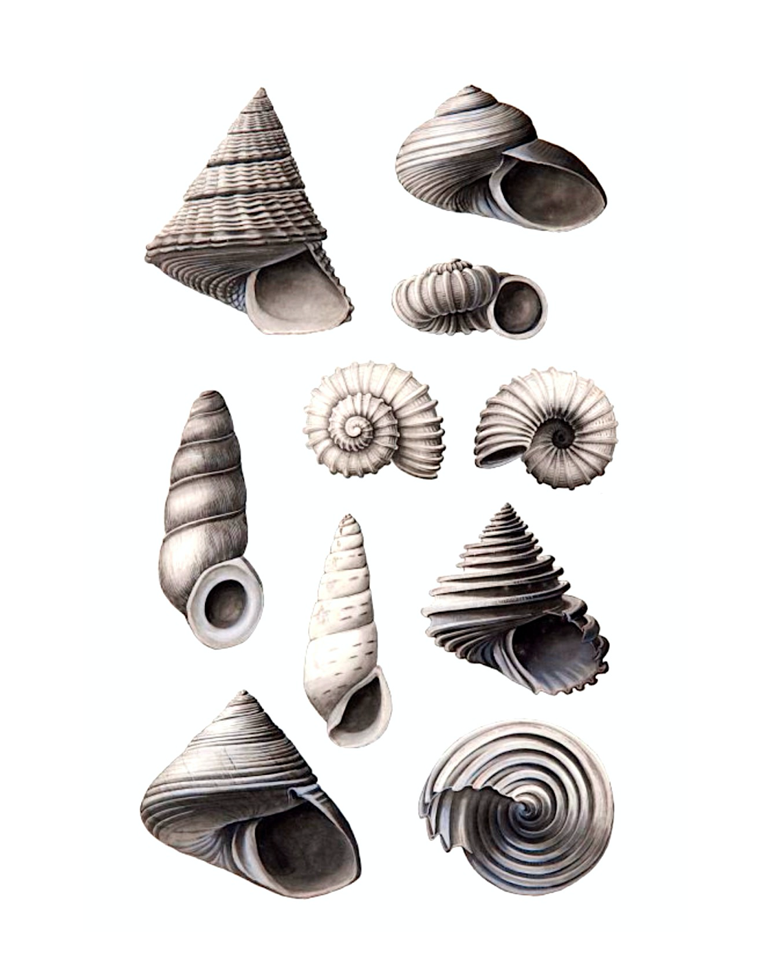 Antique seashell collection Black-and-white rendering print