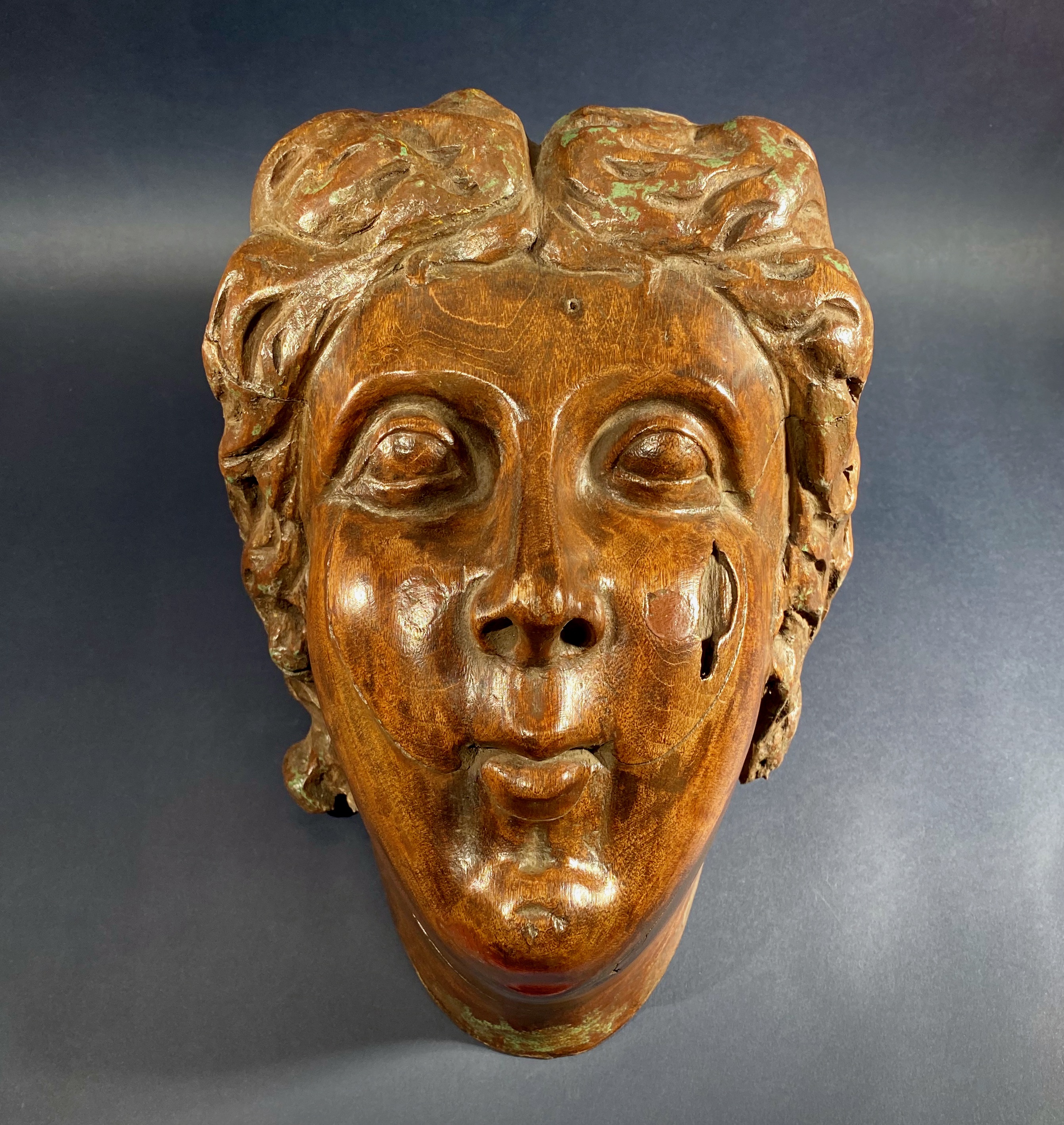 Very large antique hand carved head of a woman