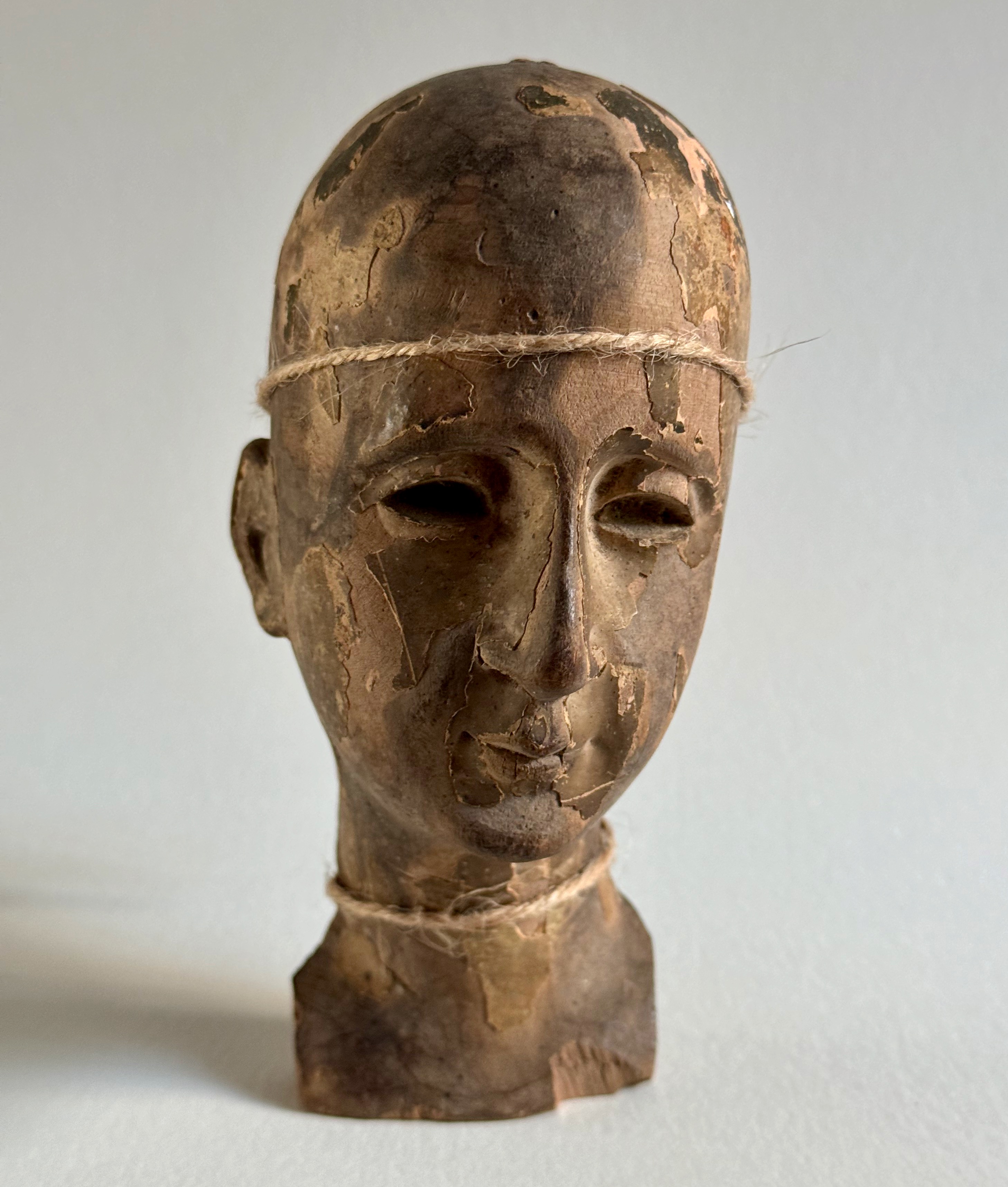 18th-Century Antique Hand-Carved Santos Religious Head