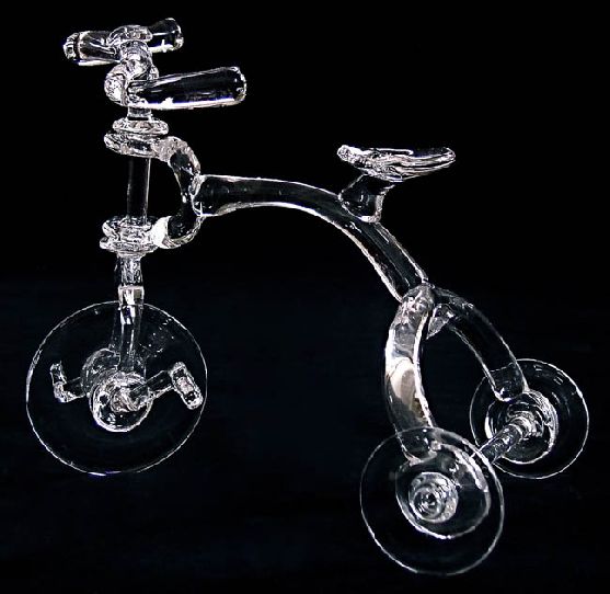 "Tricycle #1" Sculpted and assembled glass 9"H/9"W/6"D It takes 4 to 6 weeks to make.