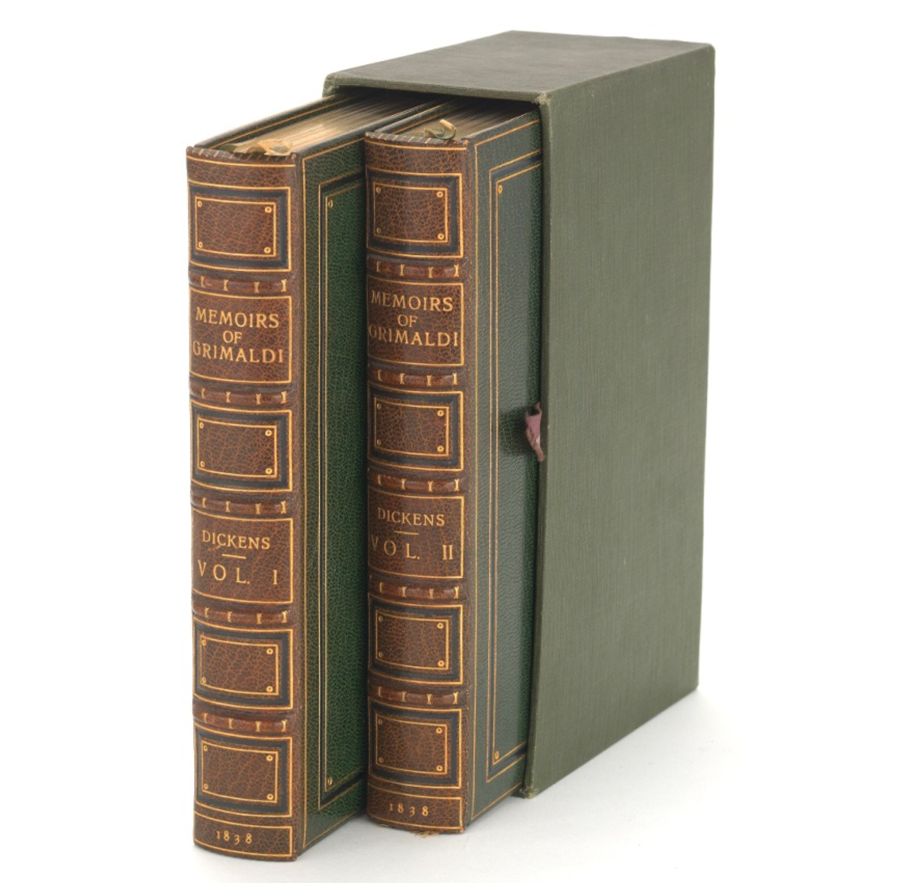 Memoirs of Joseph Grimaldi by Dickens, First Delux Edition, superb early example of a Bayntun “Inlaid” binding, Published by Richard Bentley, New Burlington Str., London, 1838, Edited by...