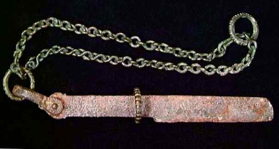 Rare Byzantine Engraved Iron Bronze Razor & chain 5th century AD