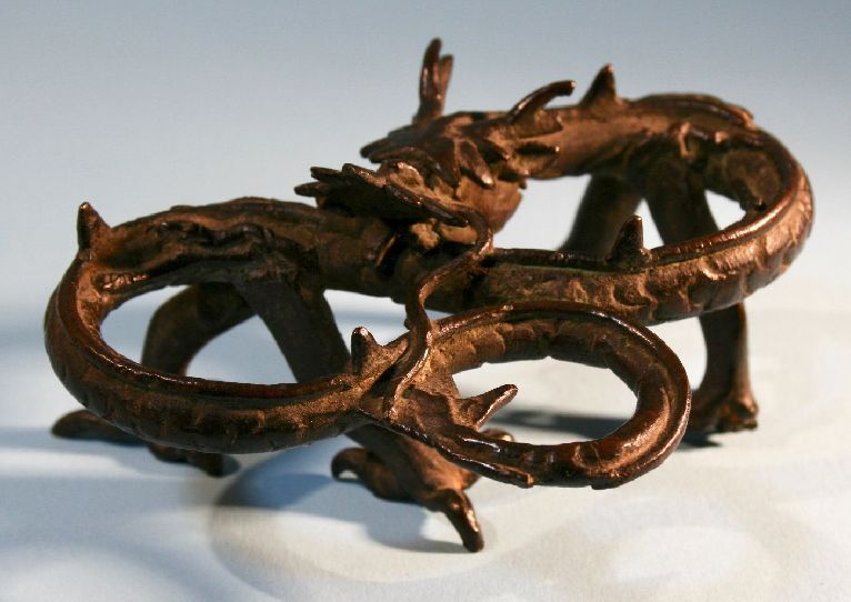 Chinese Ancient Scholar Rock Stone Bronze Dragon Display Stand