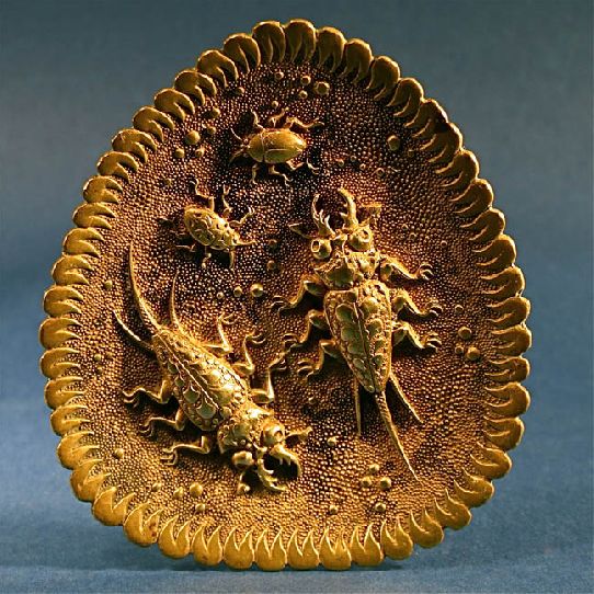 A wonderful antique rare brass dish, at least circa 1900. The bugs are lounging on a lotus leaf. It has a very Art Nouveau look but Victorians loved their nature inspired designs as wel...