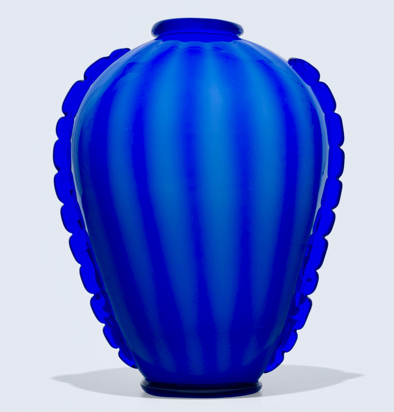 Italian glass artist Zecchin-Martinuzzi. Incamiciato Vase 1933 Italy. A vintage piece of vintage Italian cobalt blue glass lightly ribbed design. "Incamiciato glass" with cobalt si...