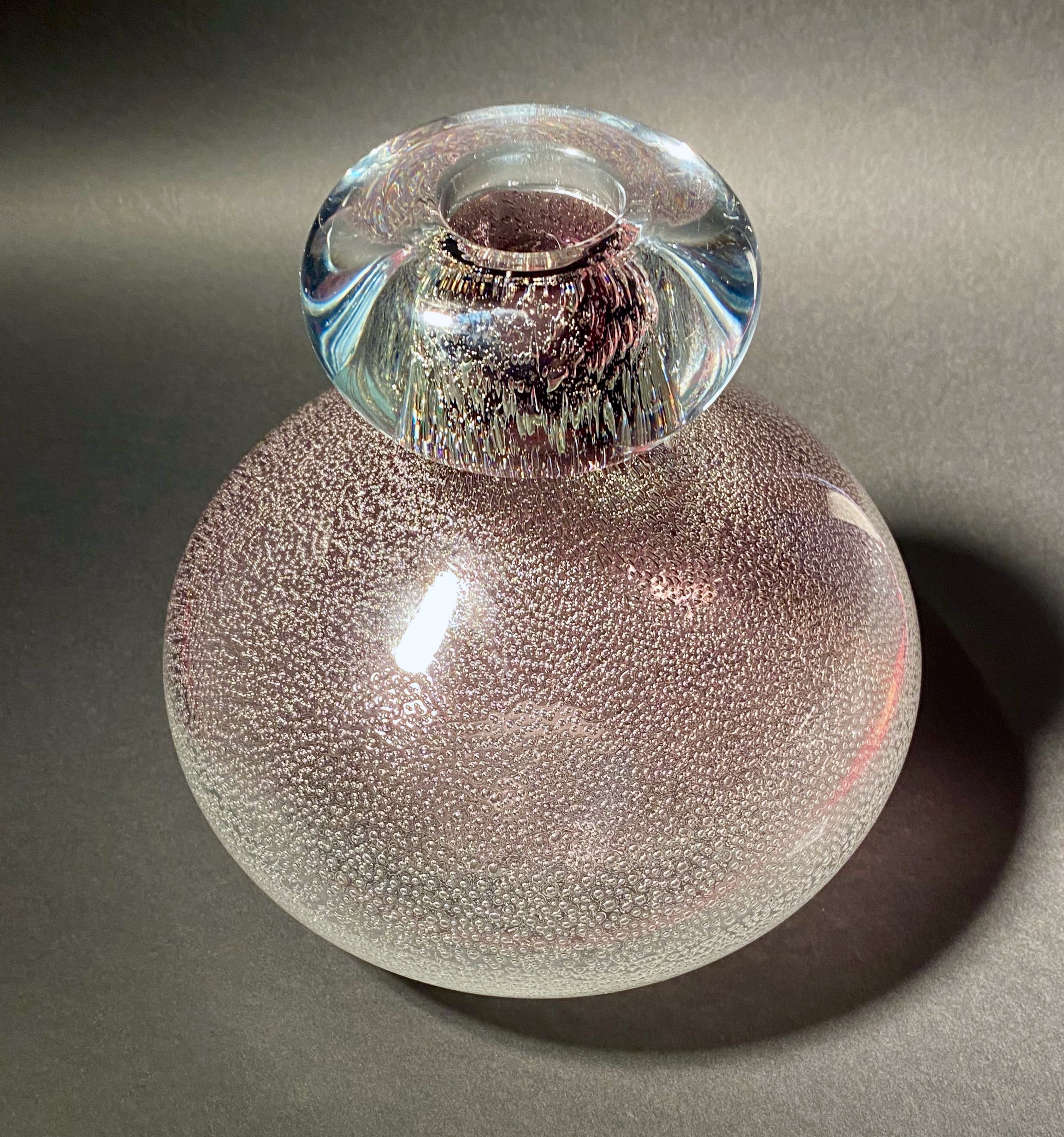 A stunning and spectacular piece of art glass, this hand-blown contemporary designer display is truly captivating. The glass features uniform, delicate bubbles throughout its base, adding to...