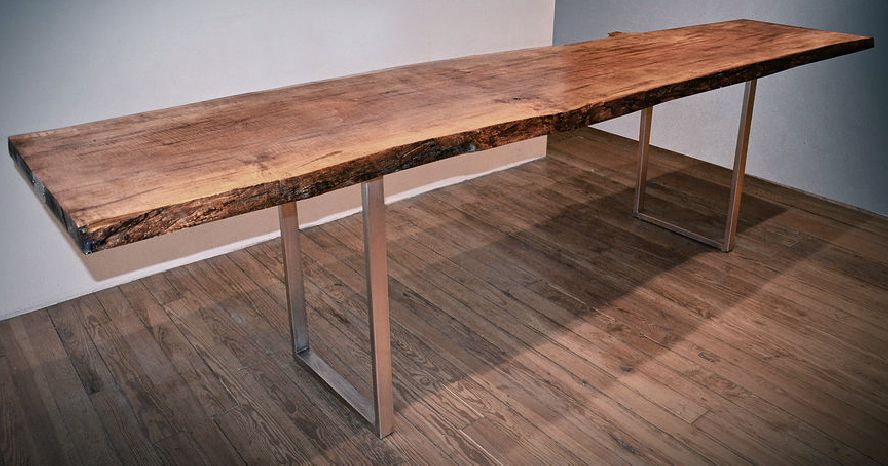 Custom Designed Wood & Metal Base Straight Leg Dining Table