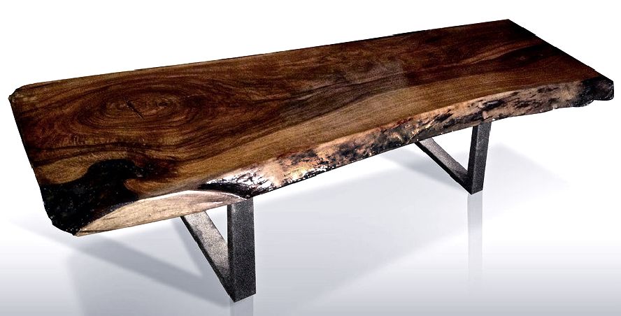 Hand Made Designed Wood & Metal Base Coffee Table Or Bench