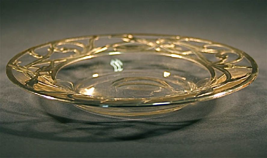 These are two beautiful little plates with graceful and elegant sterling silver overlay in both concentric circles and flowing fronds. It is certainly Art Nouveau in style, although I am no...