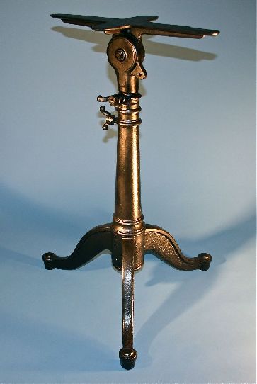 A spectacular early 19th century spinning drafting table. Exceptional workmanship. Working, small scale, mechanical drawing table with an adjustable cast-iron base and solid wood drawing bo...